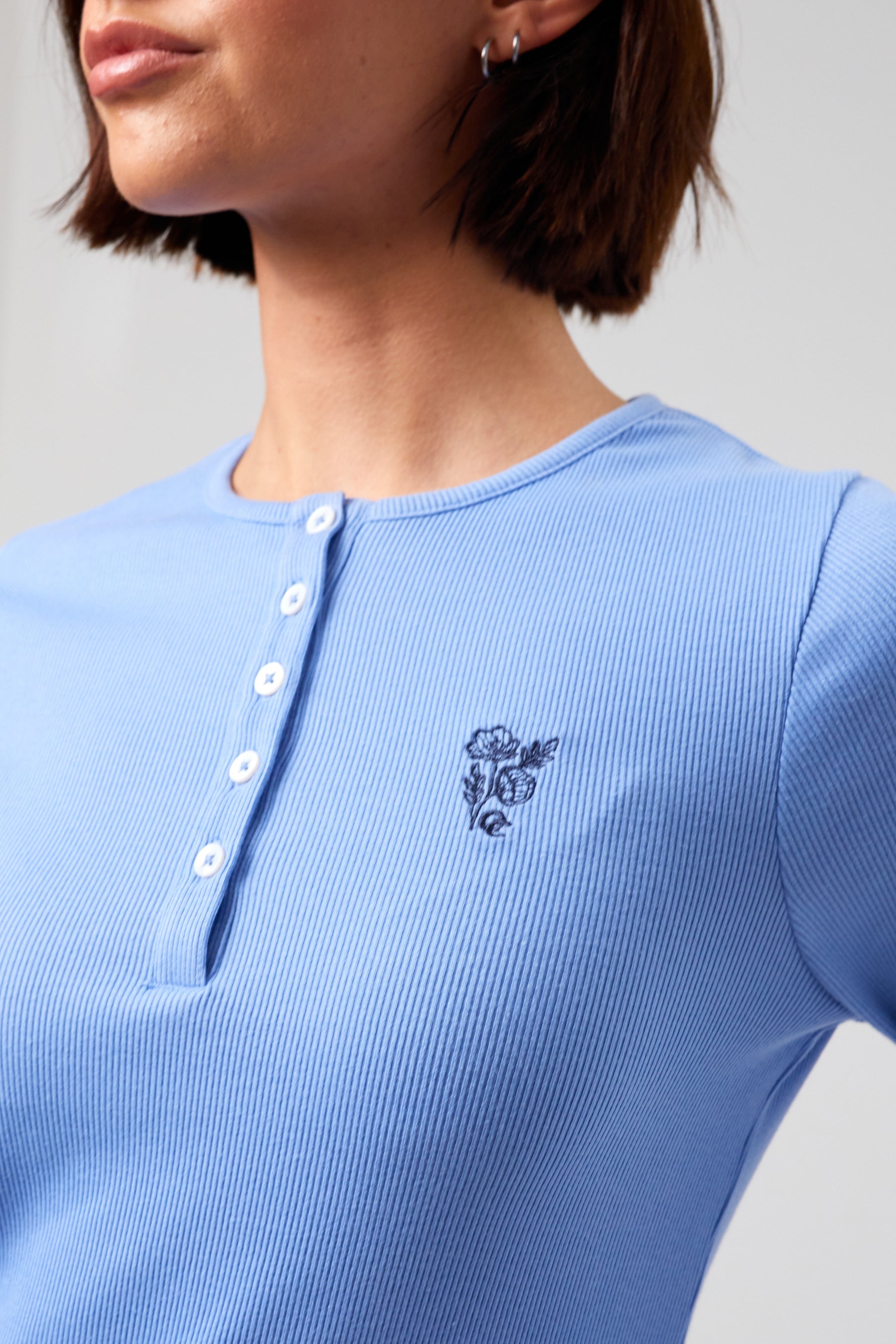 The long sleeve design is extremely flattering and crafted from a cotton rich ethically sourced fabric that is superbly soft to the touch. The tee also features special design details such as mother of pearl buttons and embroidery detailing on the left chest.