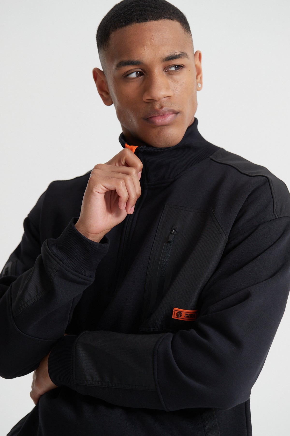 - ‘Off The Grid’ rubber badge in statement orange to left chest