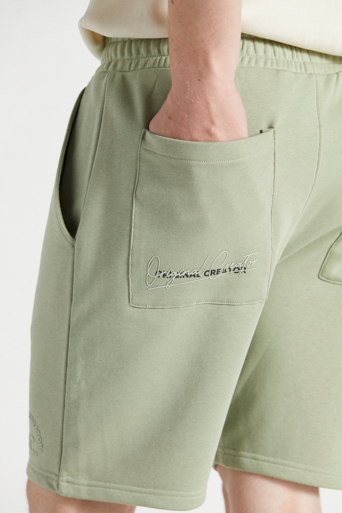 - Emblem style ‘Original Creator’ high build logo to left leg