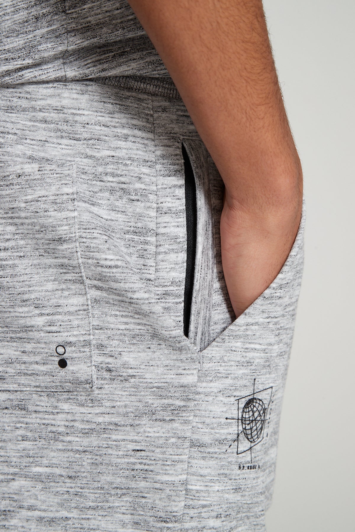 - High build “Globe” print on right leg